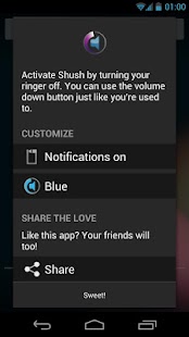 Shush supports tablets! Fixes for camera apps that mute the ringer to silence the shutter. Got an app that doesn’t play nice with Shush? Contact me and I’ll investigate.
