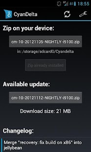 CyanDelta is the perfect replacement of “CM Updater”, “ROM Manager” and “BBQLog”. When a ROM update is available it will notify you and show the changelog between the version you have installed and the new one. If you decide to update, it will delta-download the new version and if you want it will automatically install the new zips via recovery.